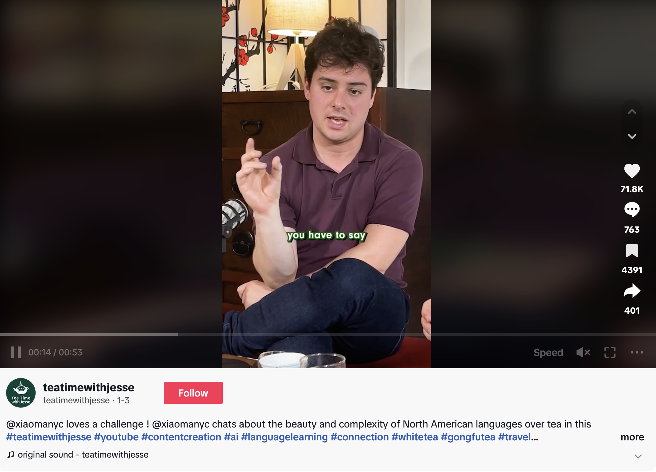 Content work for Jesse’s Teahouse produced with a global team. Long-form and short-form video content intended to develop a social tea community and boost product sales. Under my management, Youtube (71% increase in subscribers) faced rapid growth within 6 weeks. Viral videos on TikTok and Instagram reached 1.2-4M views.